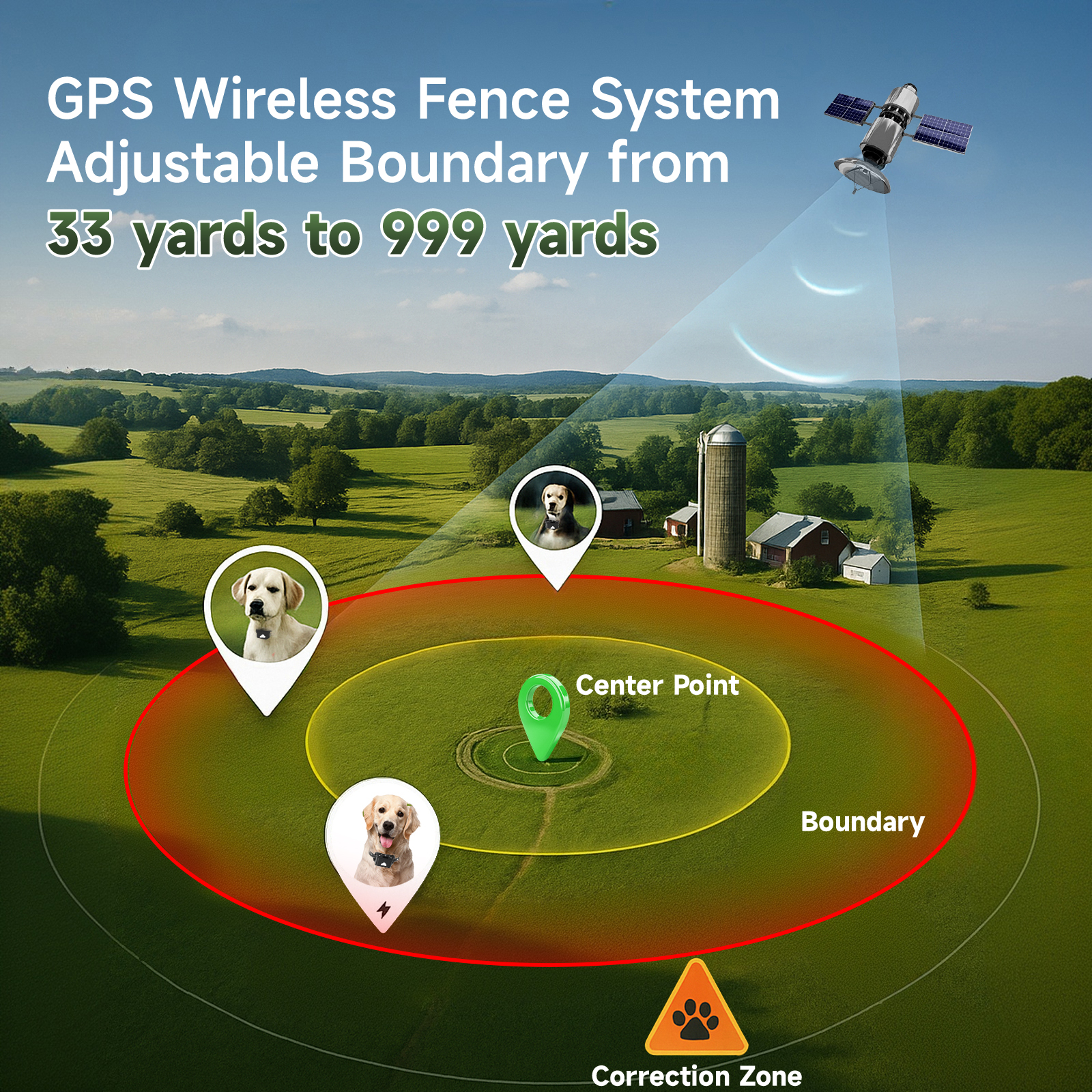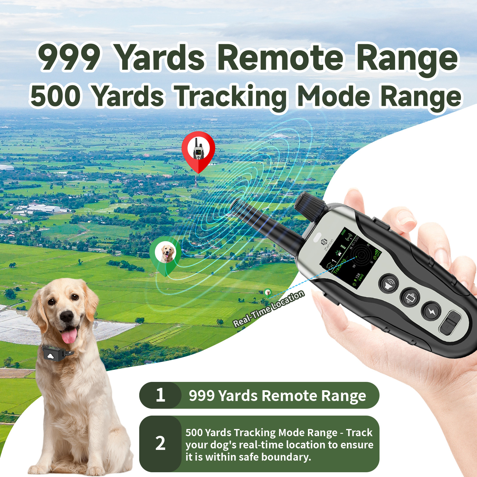 - [Remote Control Range and Fencing Range of 999 yards] The remote control has a coverage range of 999 yards, and the GPS wireless Fencing collar can be adjusted from 33 yards to 999 yards. It is suitable for courtyards, parks and open areas, allowing your dog to have more free space to move within reliable boundaries.