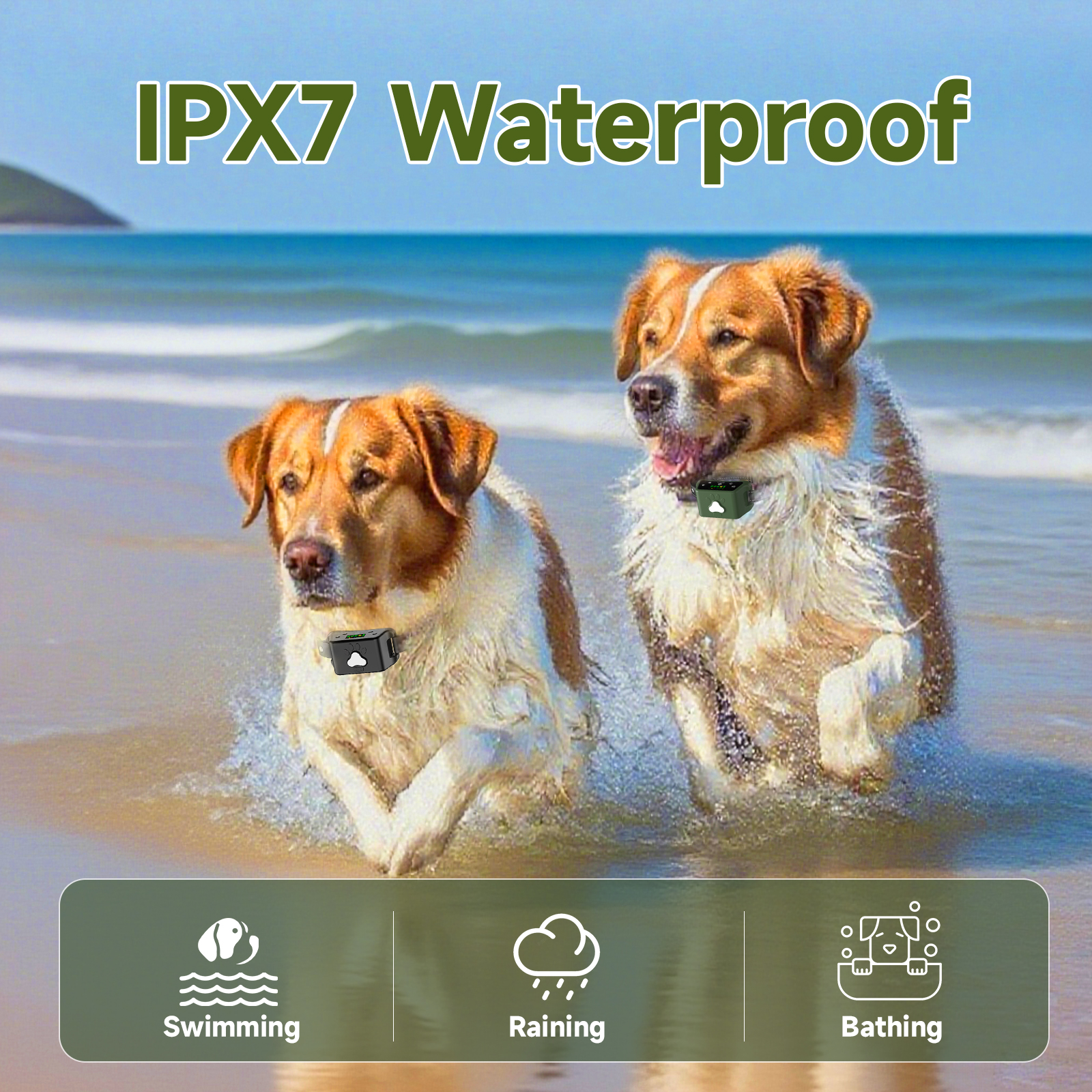 • [IPX7 Waterproof GPS Wireless Fence Collar] The IPX7 waterproof rating allows your dog to play freely in the shower, rain, or swimming, but the remote transmitter is not waterproof.