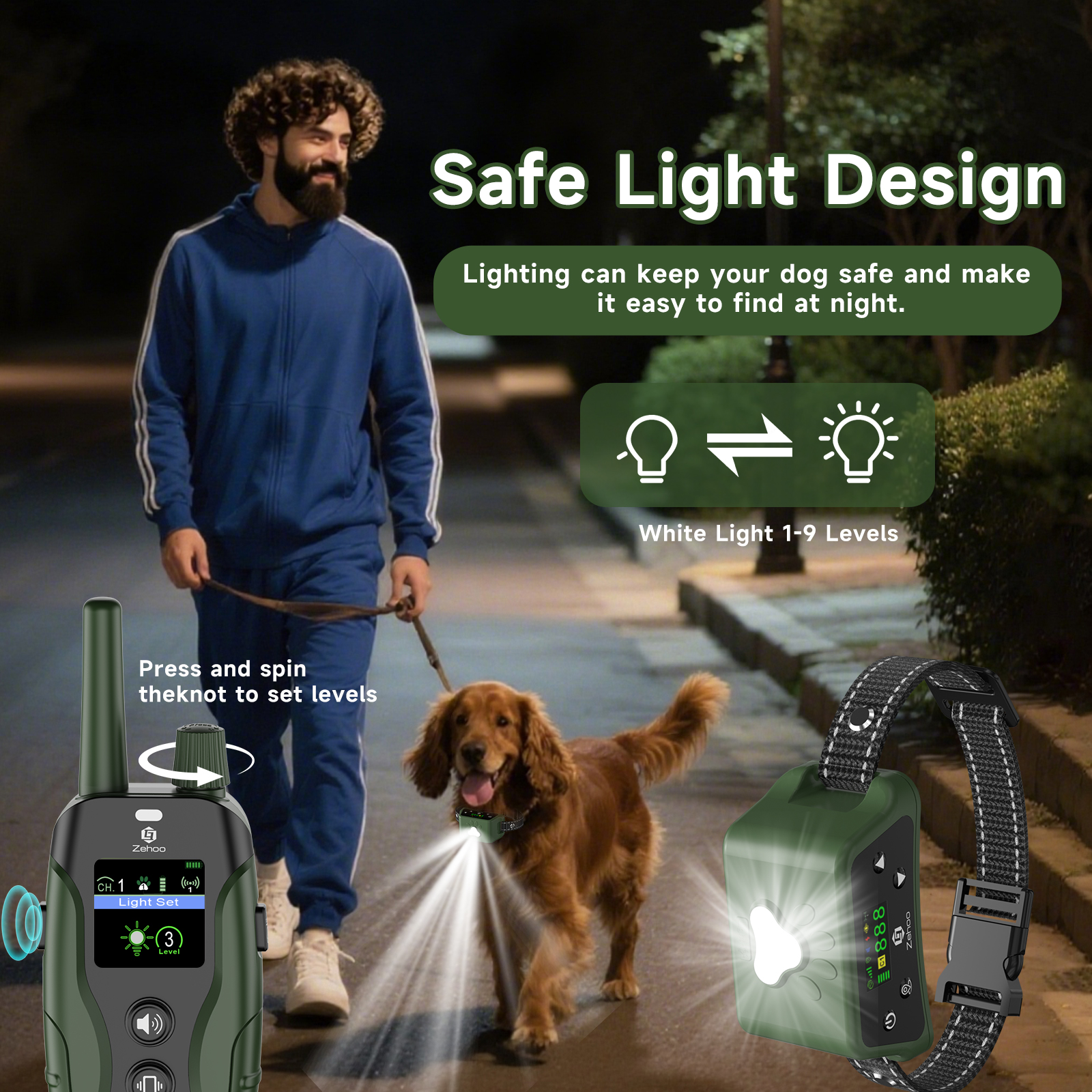 • [GPS Wireless Fence Collar with White Light] 1-9 level adjustable lights, very practical for camping or night walking, just turn on the lights remotely, can easily find your dog or keep them on to navigate the road at night.